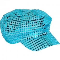 Magnifique casquette disco turquoise à sequins pour adulte 100% polyester. Accessoire idéal pour compléter votre déguisement disco. Tour de tête : 58/59 cm Longueur visière : 5.5 cm