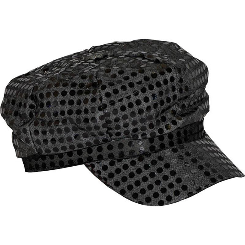 Magnifique casquette disco noir à sequins pour adulte 100% polyester. Accessoire idéal pour compléter votre déguisement disco. Tour de tête : 58/59 cm Longueur visière : 5.5 cm