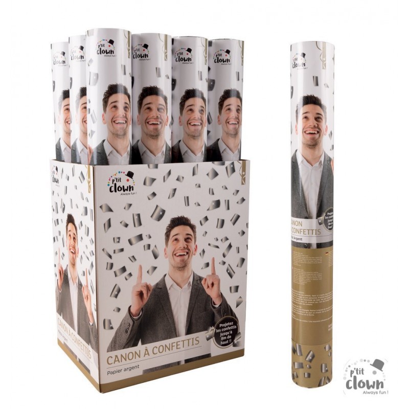 Canon à confettis papiers métal argent 40 CM TIR 5 M