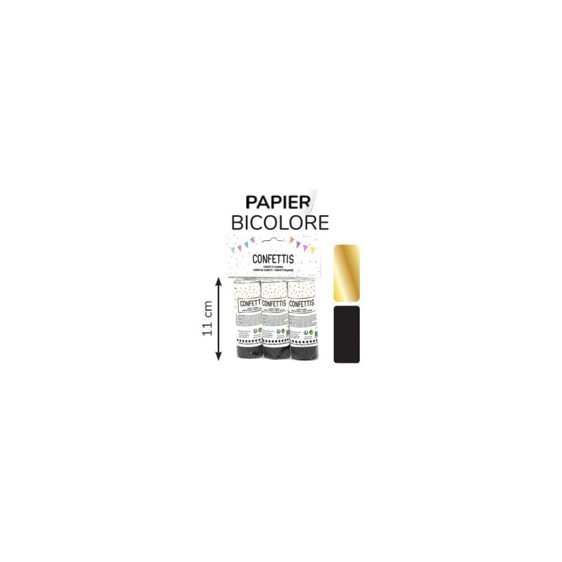 3 canons à confettis 11 cm * mix NOIR/OR PAPIER DE SOIE 2024