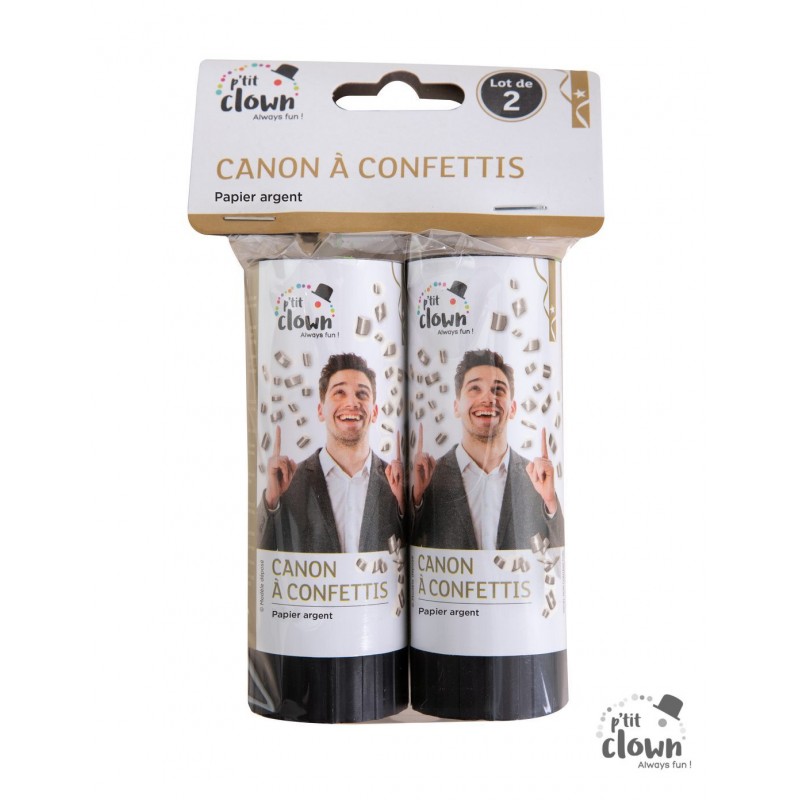 1 canon à confettis papier - 11 cm - lot de 2 - argent unité 2024