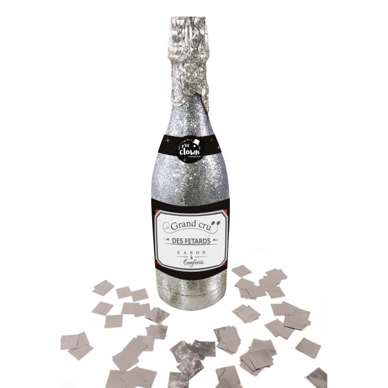 Bouteille canon à confettis papier - 32 cm - argent