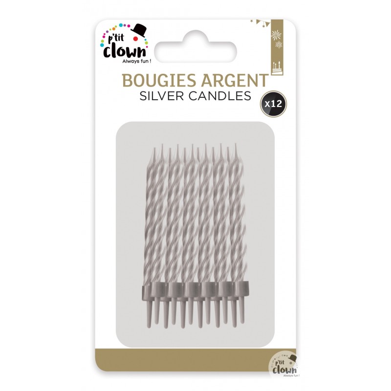 Bougie - argent - lot de 12 EPUISEE