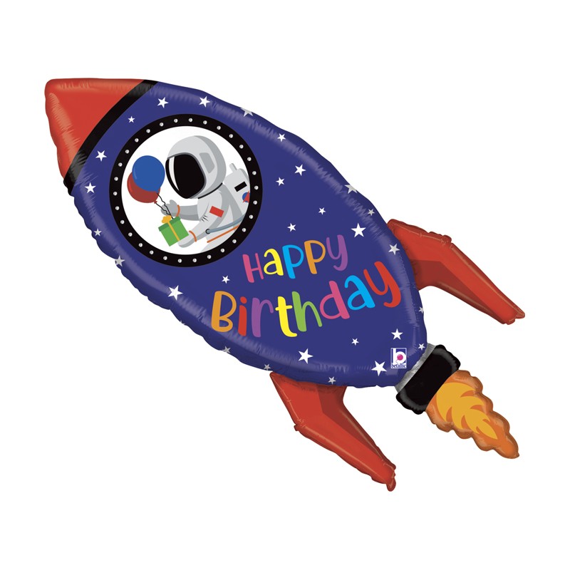Ballon Happy birthday Astronaute en fusée (101cm)