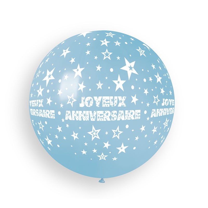 Ballon géant rond "joyeux anniversaire" bleu bébé ø 80cm