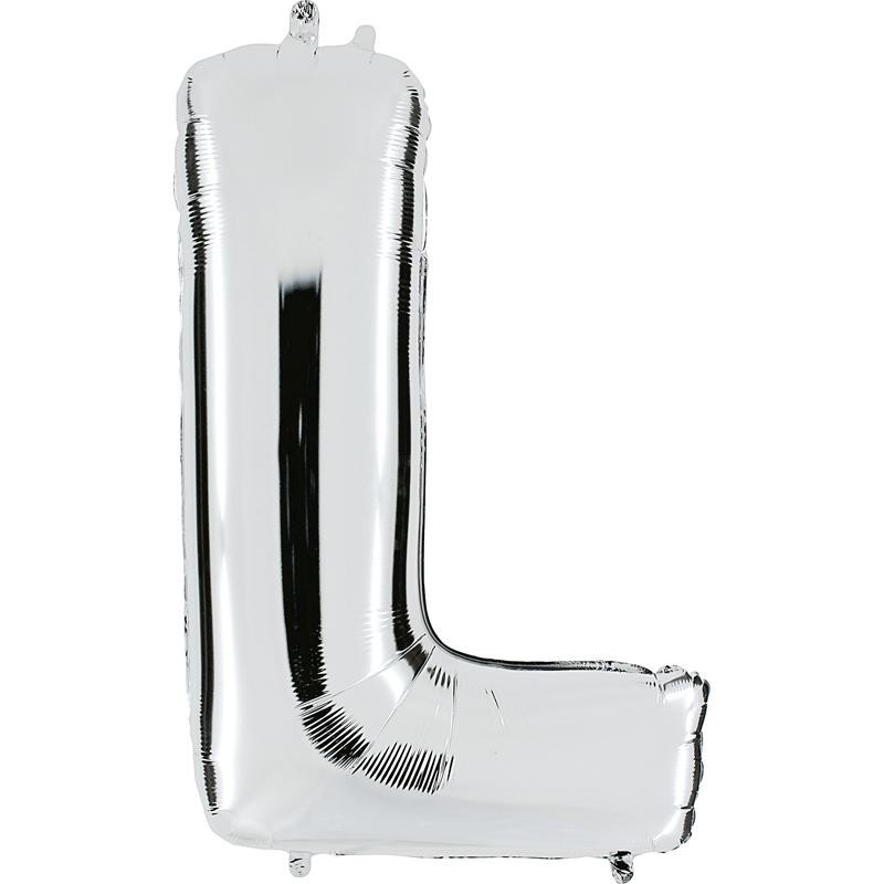 Sachet de 1 ballon mylar métallisé argent lettre L - hauteur 102 cm