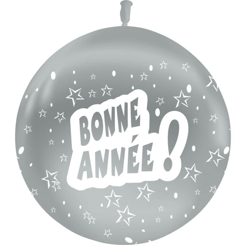 Ballon Latex HG3′ 90 cm Bonne Année Métal Argent