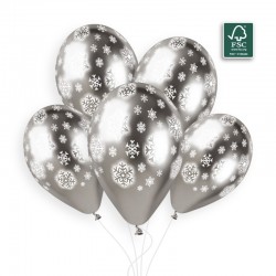 25 ballons flocon neige argent chromé shiny 30 cm