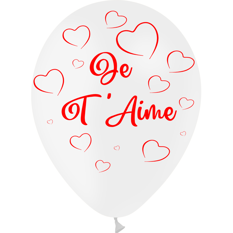 6 Ballons Latex HG112 Je T’Aime Cœurs Blanc