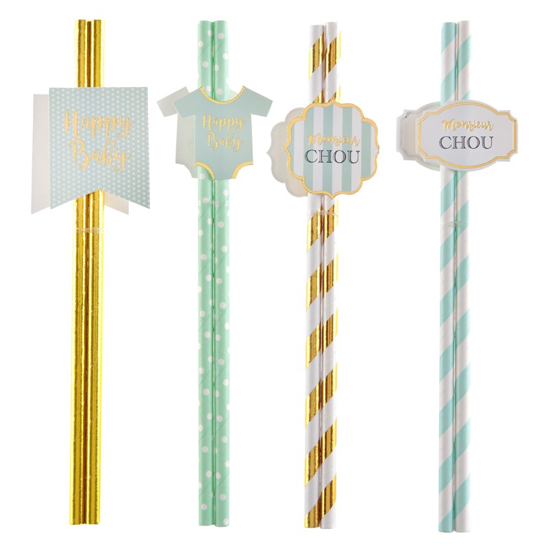 Boite de 8 pailles en papier motif bébé garçon Ø0.6 x 19.2cm EN RUPTURE