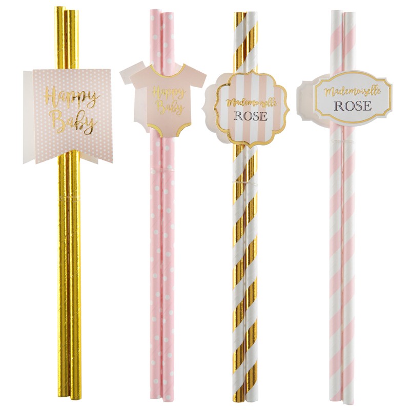 Boite de 8 pailles en papier motif bebe fille ø0.6 x 19.2cm EN RUPTURE