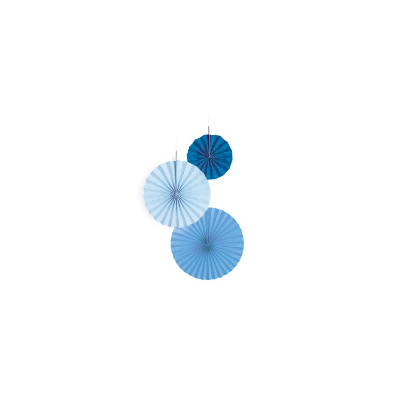 3 Fan Decorations Sky Blue Paper 18 cm / 30 cm / 38 cm