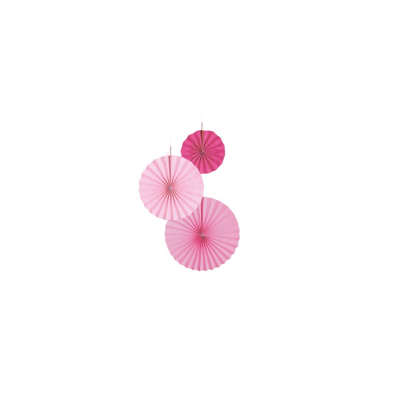 3 Fan Decorations Hot Pink Paper 18 cm / 30 cm / 38 cm