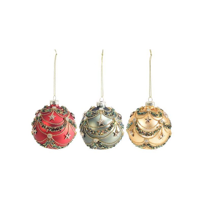 Boule en verre avec décorations à accrocher sur le sapin unité 2024