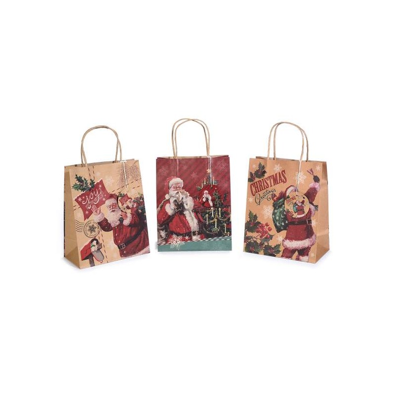 Sac / enveloppe en papier naturel moyen 18 cm x 10 x 22,5 haut avec imprimés de Noël unité 2024