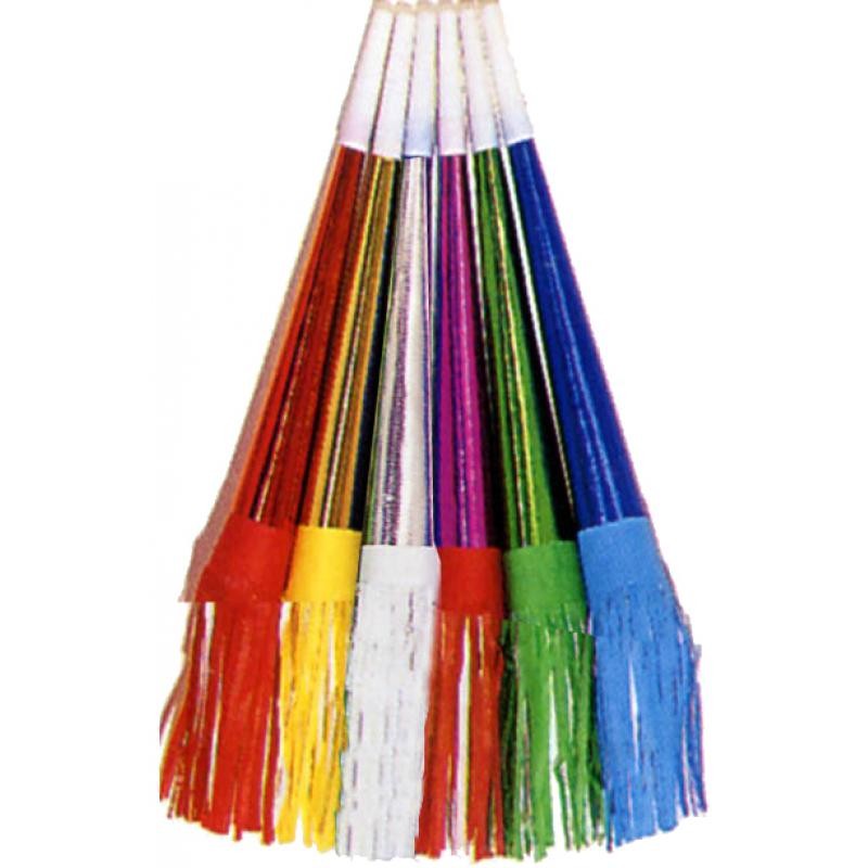 Sachet de 6 trompettes metallisees 20 cm avec flots assorties