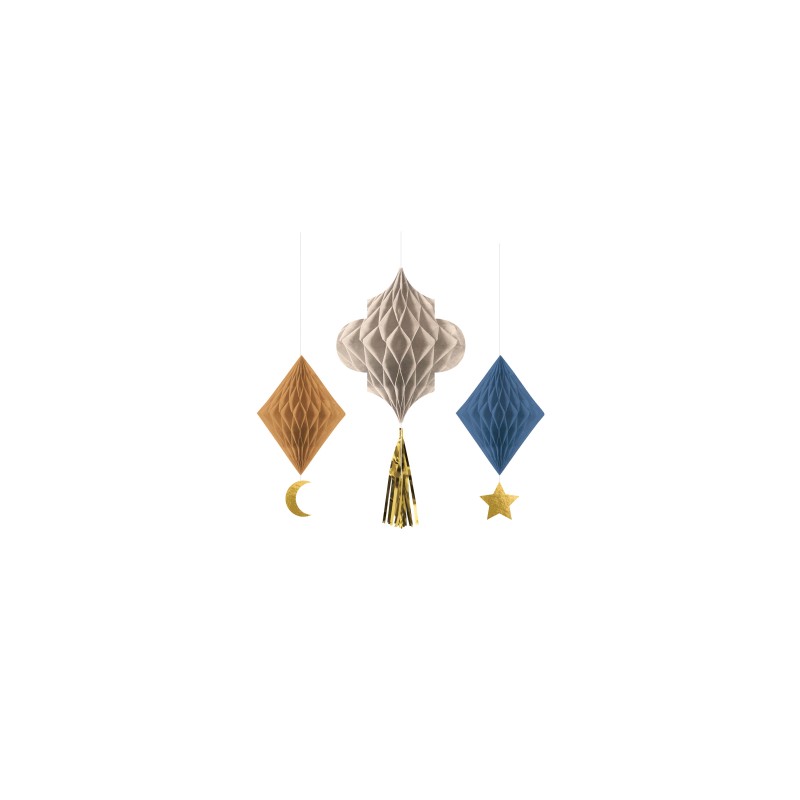 3 Hanging Decoration Eid Ramadan (Honeycomb with Tassel)