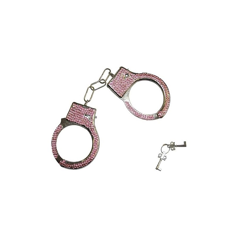 Menottes métal avec cléf en strass rose
