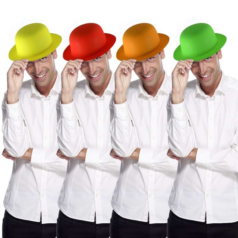 Chapeau melon fluo uni assortis en pvc