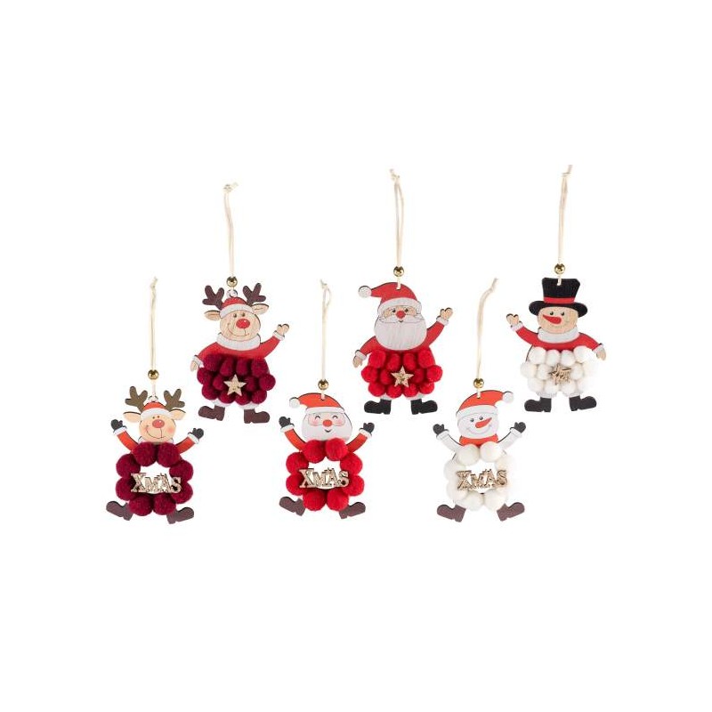 Décoration de Noël en bois avec pompon et écriture à accrocher divers modèle selon arrivage 2025
