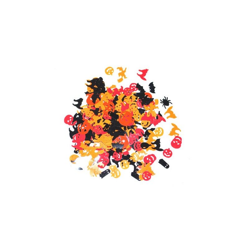 confettis de table Halloween, en plastique, poids du sachet 20gr, diamètre d'un confetti citrouille: 1.5cm EPUISE FIN SERIE