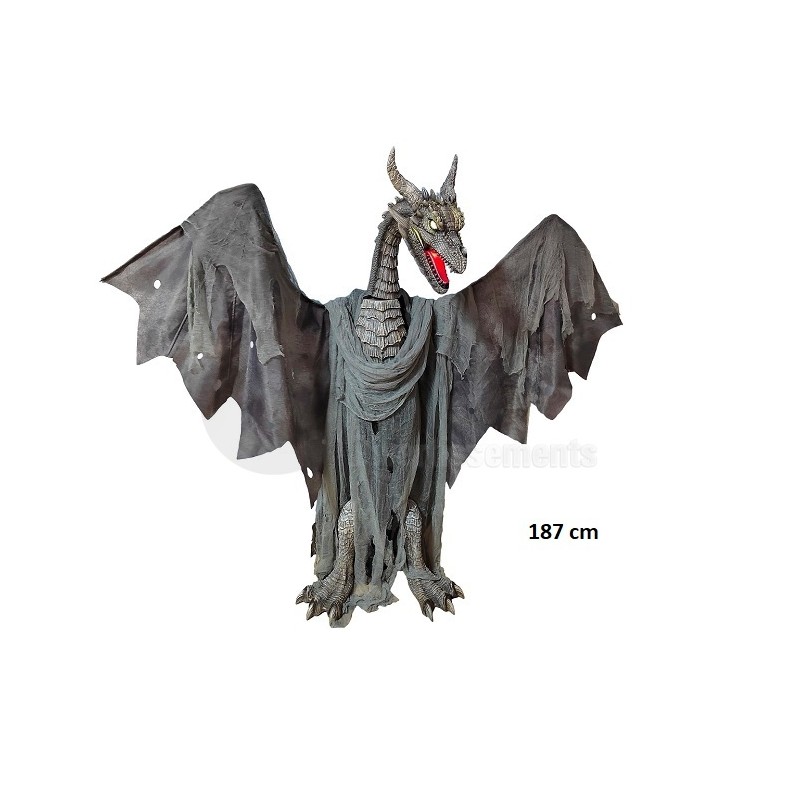 dragon zombie géant lumineux sonore et motorisé 1.87m 220V SUR COMMANDE EPUISE