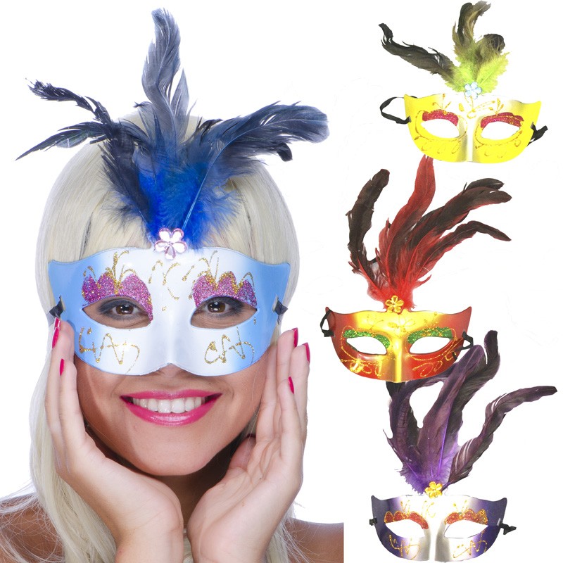 loup vénitien a paillettes et plumes couleurs et modèles assortis