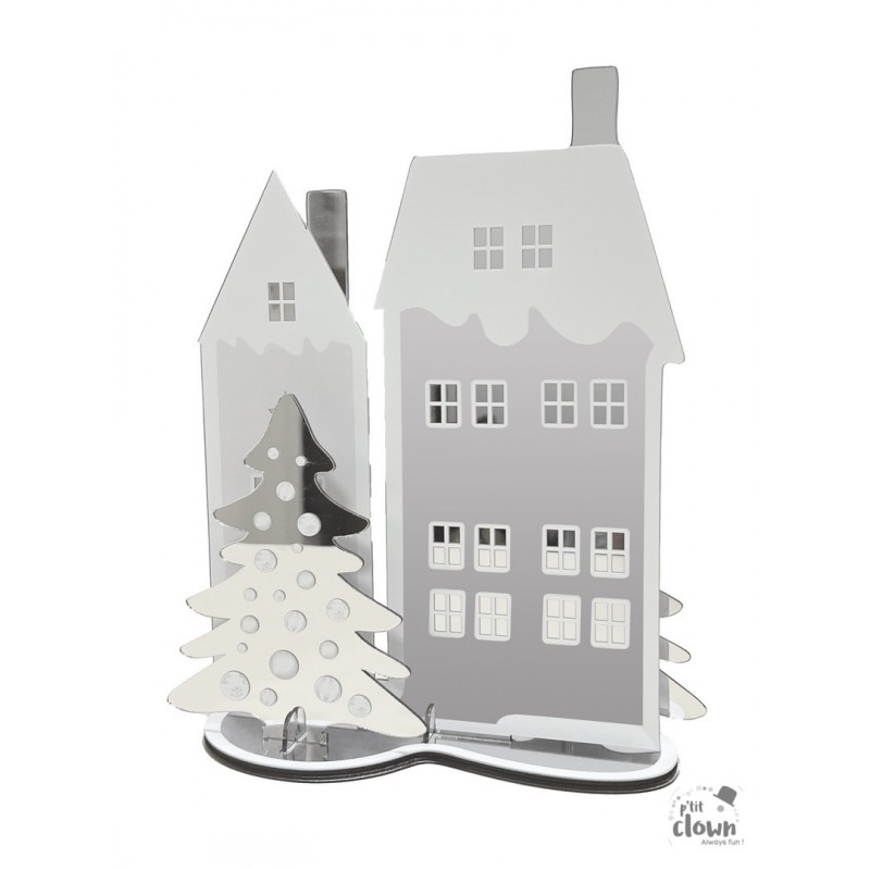 Déco Noël effet miroir - maisons - argent - 20 cm 2024