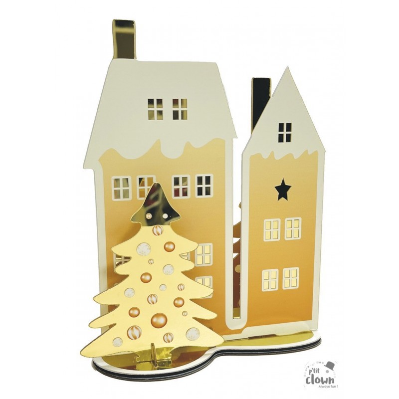 Déco Noël effet miroir - maisons - or - 20 cm 2024