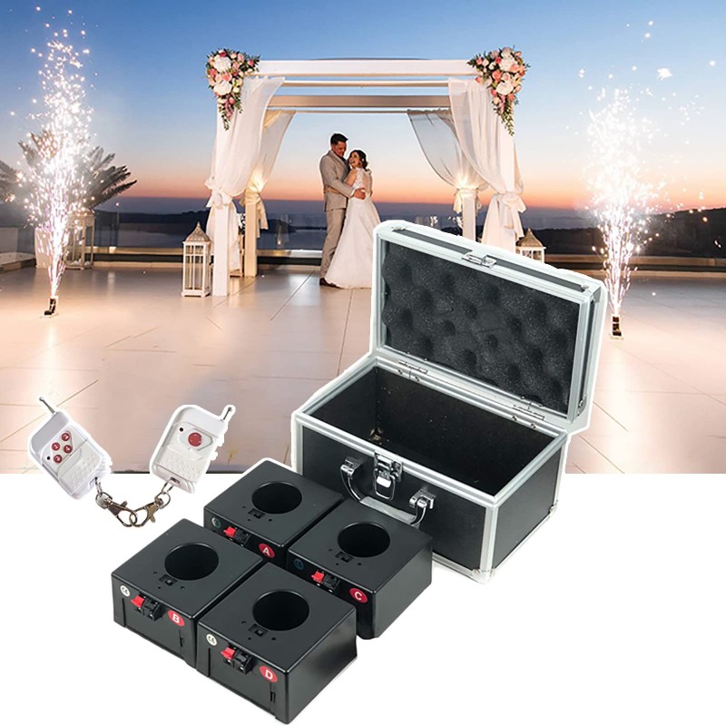 VALISE POUR JETS DE SCÈNES EN LOCATION (PACK COMPLET POUR 4 TIRS) FEU D'ARTIFICE INTÉRIEUR/Il s'agit du dernier système d'allumage de feux d'artifice pour rendre vos mariages, fêtes et célébrations plus beaux. Mettez simplement un feu d'artifice avec une flamme froide dans le trou et appuyez sur le bouton de la télécommande pour obtenir l'atmosphère de feu d'artifice souhaitée.