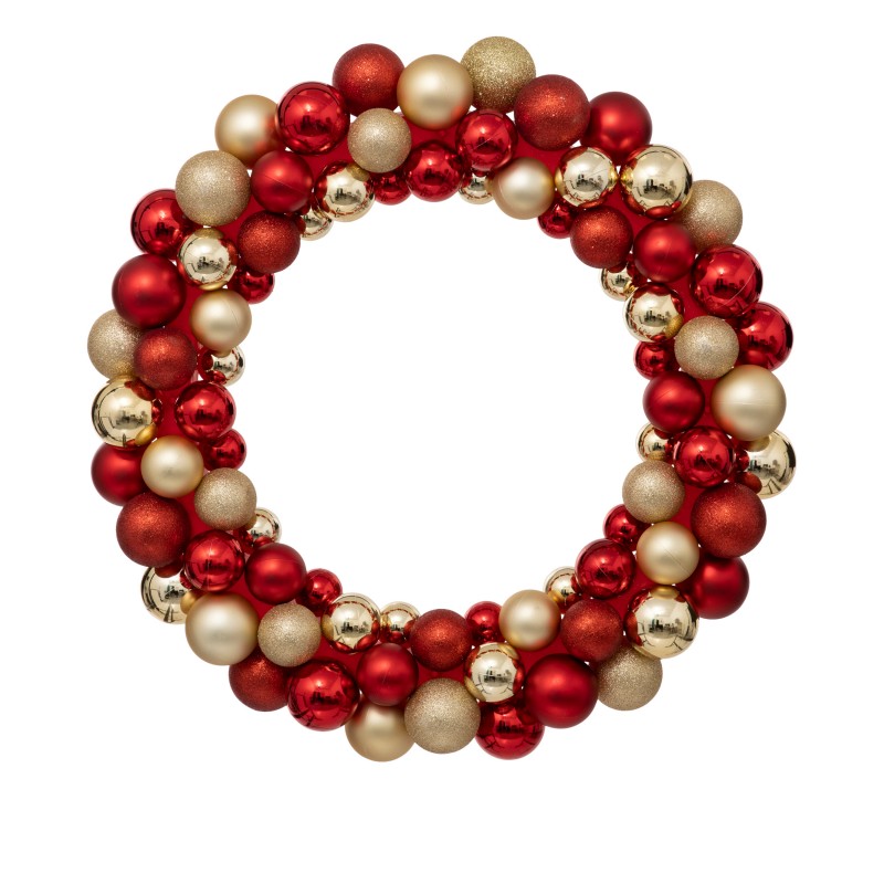 COURONNE BOULES DE NOEL (Boules rouges et or) Diamètre 55 cm 2024