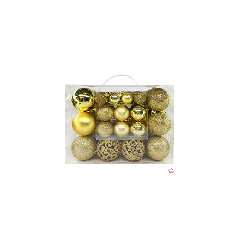 BOÎTE DE 44 BOULES DE NOËL DORÉES DIAMÈTRES 6CM 4CM ET 3CM POUR SAPIN EPUISE