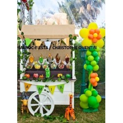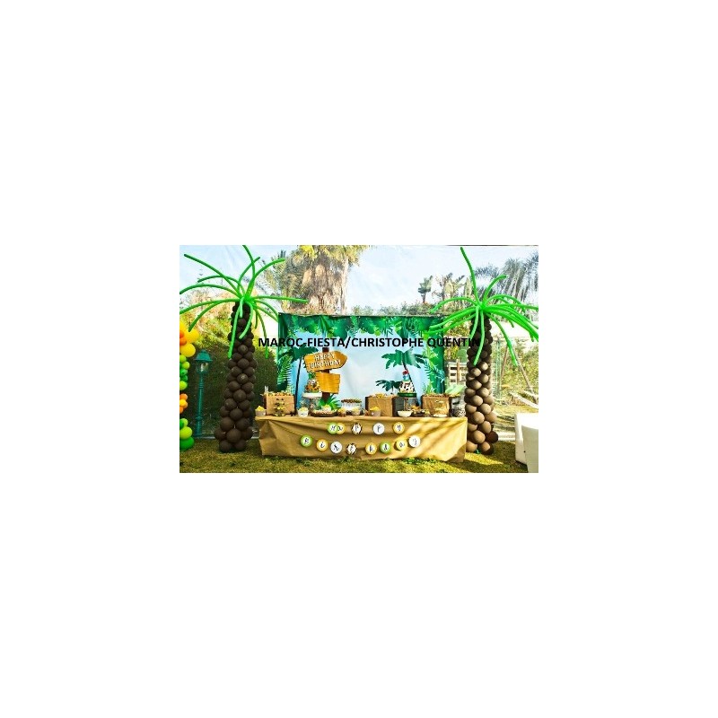 Anniversaire thème la jungle (thème complet imaginé par les parents et réalisé par Christophe Quentin (buffet, Candy bar , boites surprises ,ateliers créatifs ,maquilleuse, magicien , animation, DJ sonorisation, lumière, châteaux gonflables , trampoline)