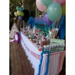 Kidchella buffet et anniversaire (thème complet imaginé par les parents et réalisé par Christophe Quentin (buffet, Candy bar , boites surprises ,ateliers créatifs ,maquilleuse, magicien , animation, DJ sonorisation, lumière, châteaux gonflables , trampoline)