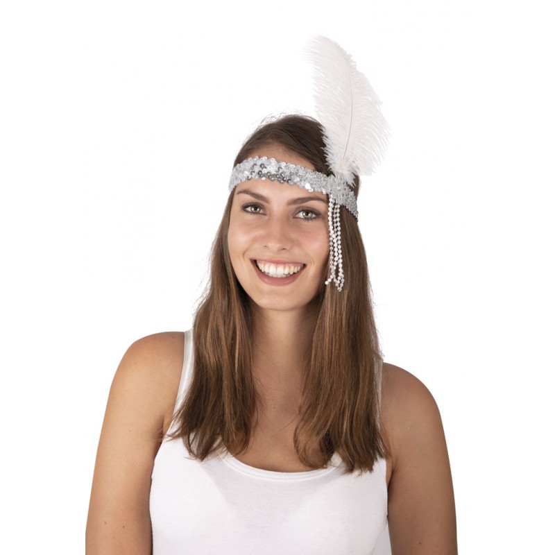 L'indispensable bandeau charleston à sequins pour complèter votre déguisement des années 20. Largeur bandeau : 4 cm Hauteur plumes : env 22 cm EPUISE