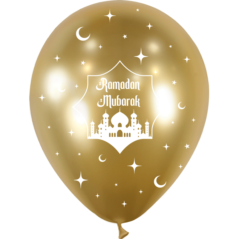 8 Ballons Latex 30cm Ramadan Mubarak Brillant Or