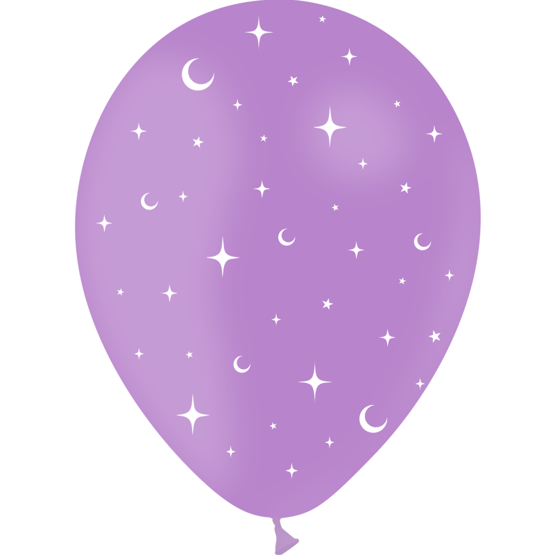 8 Ballons Latex 30cm Lune & Étoiles Lilas