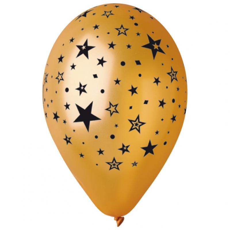 10 Ballons or étoiles noires imprimées 30 cm en sachet