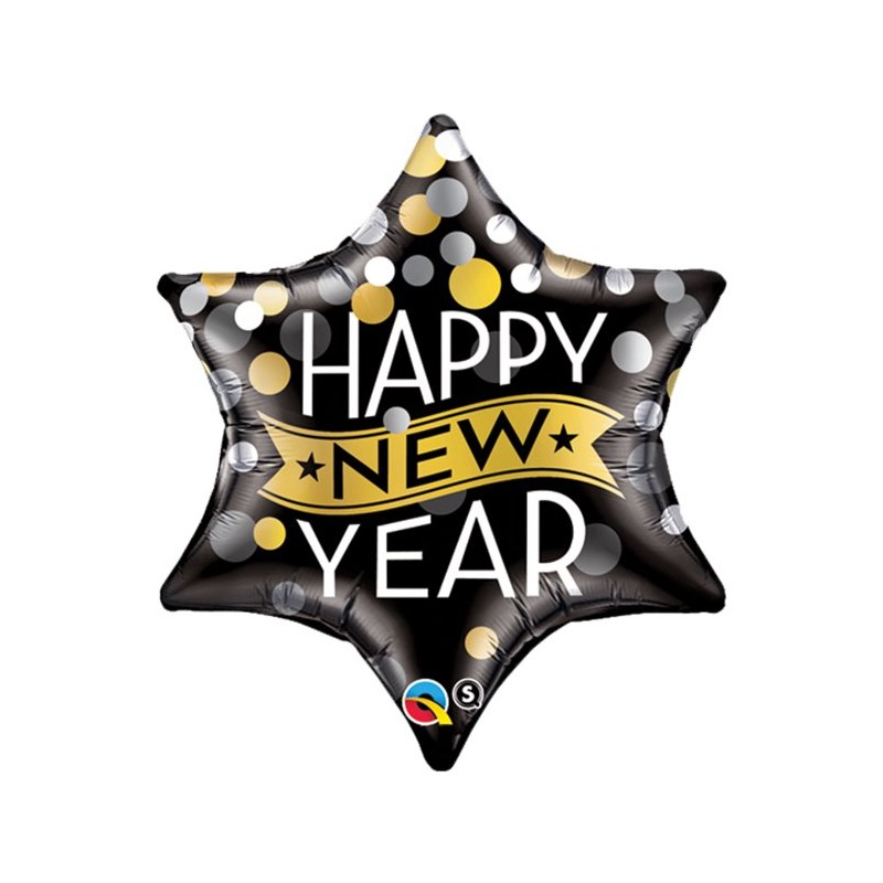 Happy New Year Confetti Dots Star Shape 22" Foil Balloon, Black Gold