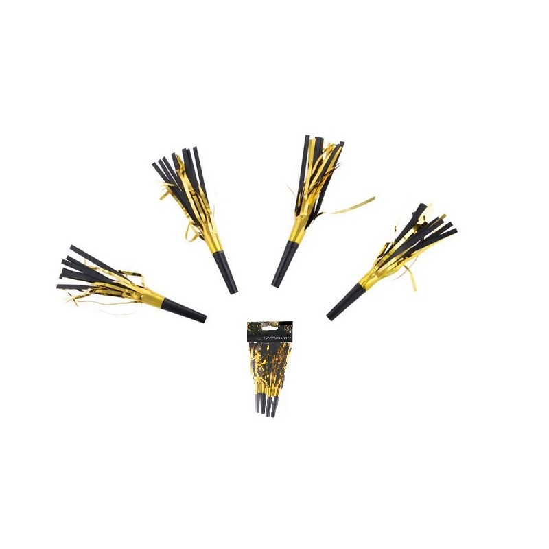 Trompette avec franges NOIR et OR 17 cm unité 2024