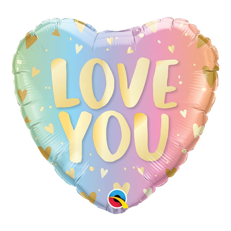 Ballon Aluminium 18″ ( 45 cm ) Love You Pastel Ombre & Hearts