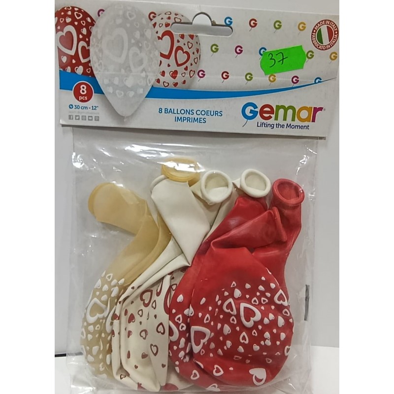 8 Ballons 12″ - 3 cm - Cœur imprimé " coloris