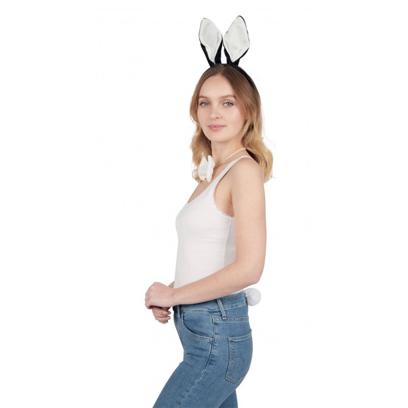 Set serre tete oreilles de lapin tissu noire et blanche et noeud papillon et queue